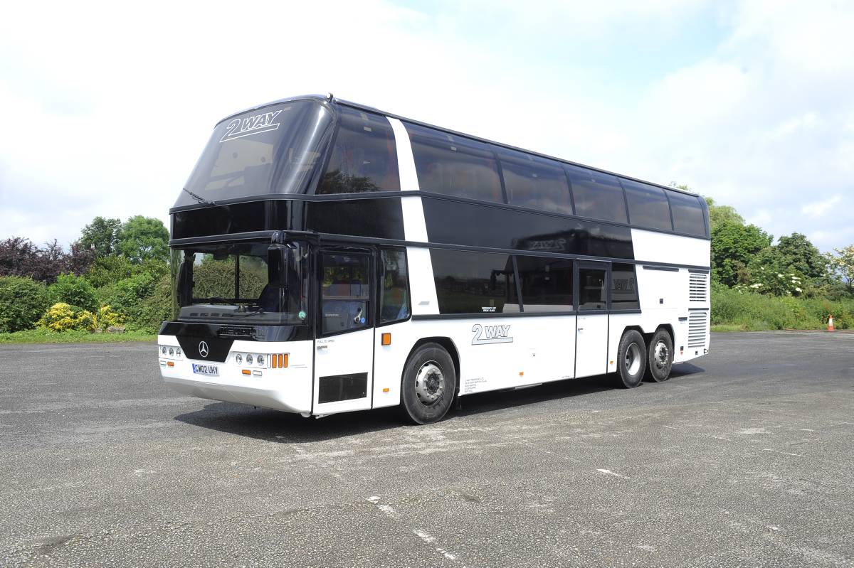 We also have available a 75 seater, belted, double deck service bus which is perfect and more cost effective for short journeys.